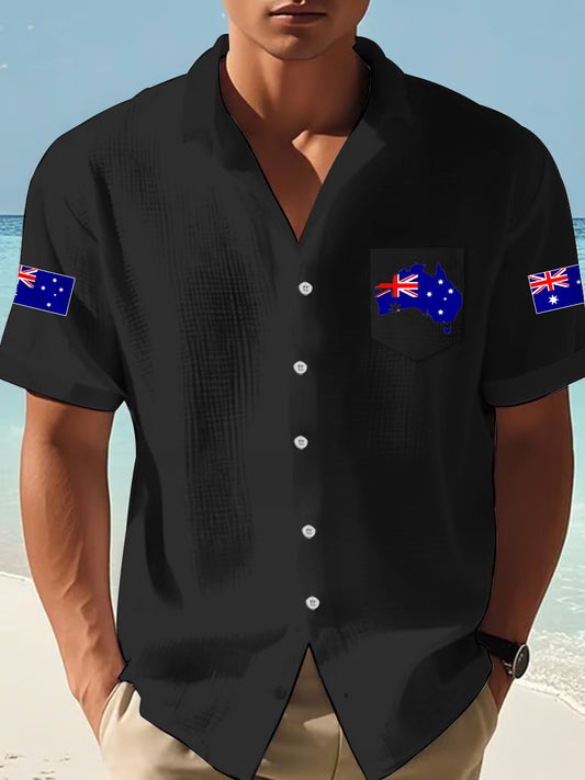 Men's Australian Flag Print Casual Short-Sleeve Waffle Shirt