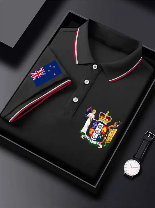 • Men’s New Zealand Flag Printed Casual Tops Black / S