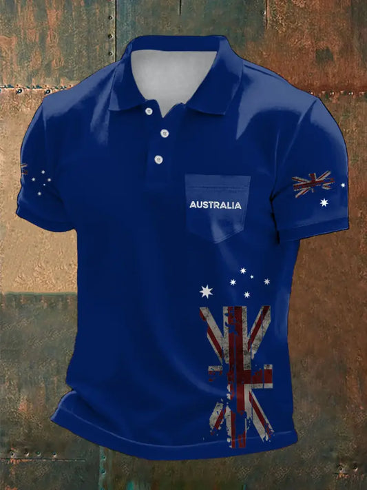 Men's Vintage Australian Flag Coat of Arms Lines Printed Casual Cotton Short Sleeve Polo Shirt