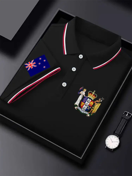 Men's Vintage Australian Flag Kangaroo and Emu Badge Printed Business Casual Cotton Short Sleeve Polo Shirt