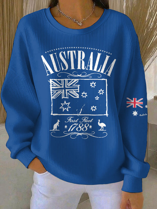 Retro Australian Flag Badge Print Casual Long Sleeve Sweatshirt