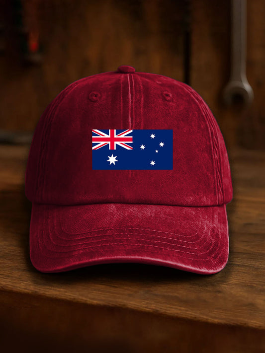 • Vintage Australian Flag Badge Casual Print Washed Hat