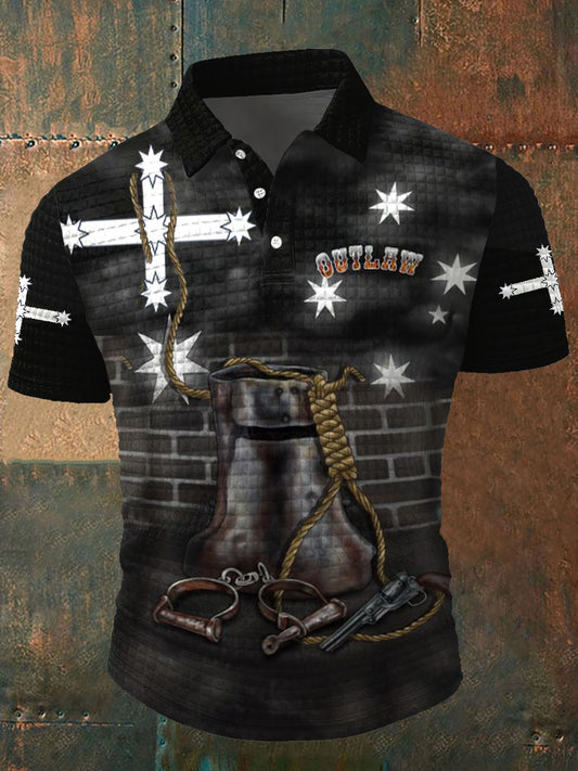 Men's Vintage Australian Flag Coat of Arms Lines Printed Casual Cotton Short Sleeve Polo Shirt