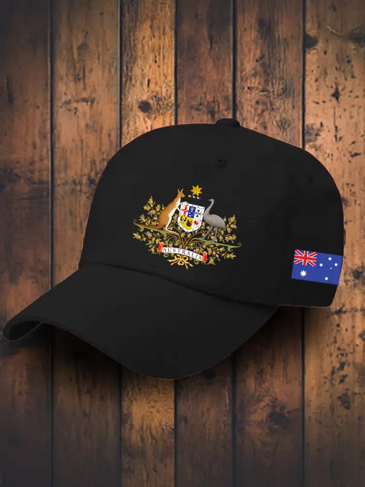 Men's Vintage Australian Flag Coat of Arms Lines Printed Casual Cotton Short Sleeve Polo Shirt
