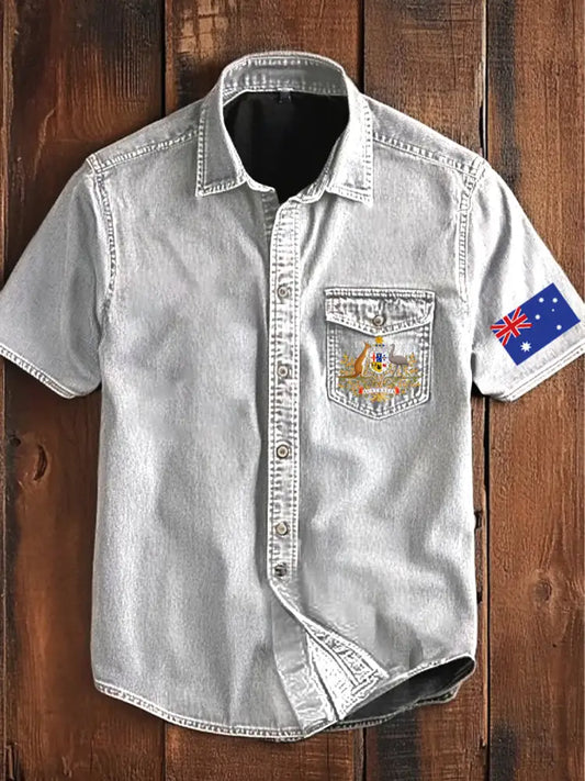 Men's Vintage Australian Flag Crest Printed Casual Cotton Short Sleeve Polo Shirt
