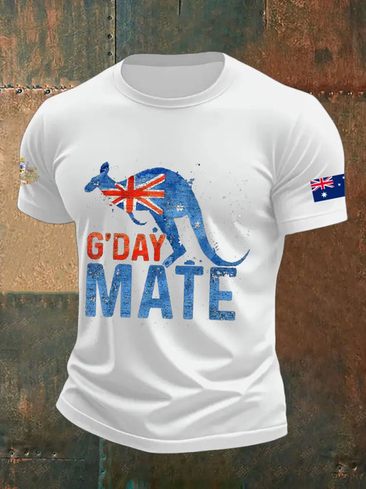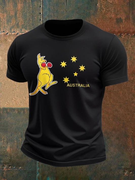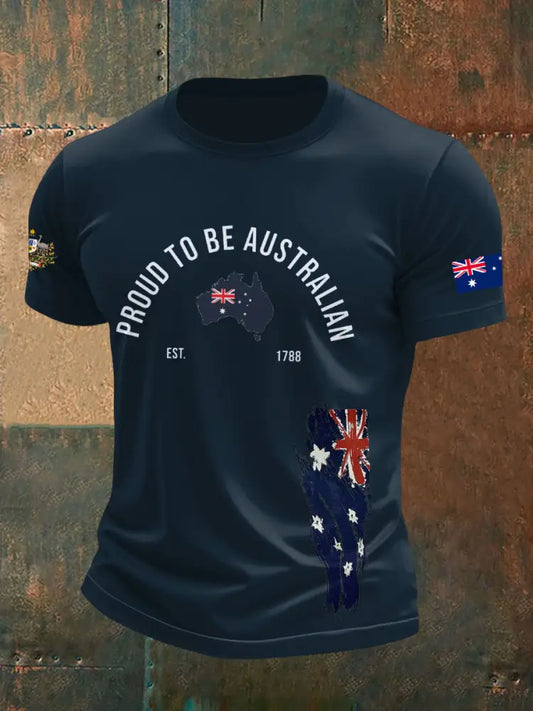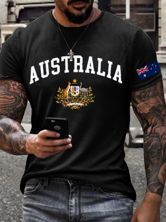 Vintage Australian Flag Badge Patchwork Print Casual Cotton Short Sleeve T-Shirt