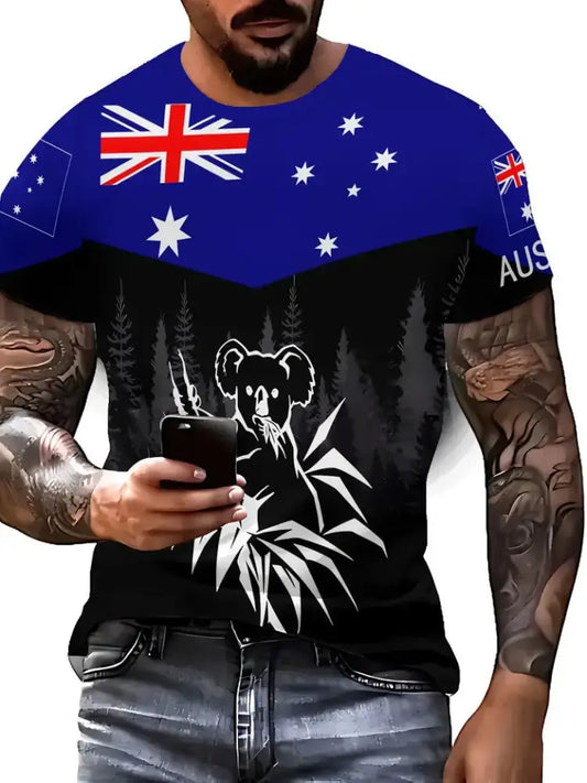 Vintage Australian Flag Koala Print Casual Cotton Short Sleeve T-Shirt