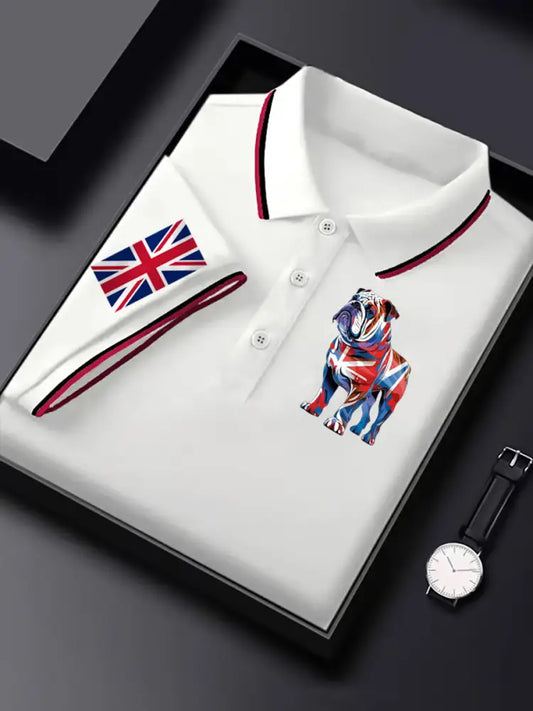 Men's Vintage Australian Flag Kangaroo and Emu Badge Printed Business Casual Cotton Short Sleeve Polo Shirt