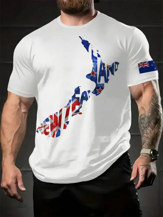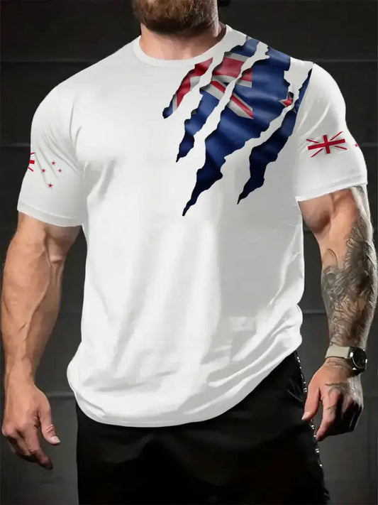 • Vintage Australian Flag Badge Print Casual Cotton Short Sleeve T-Shirt