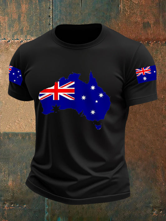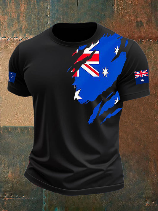 Men's Australian Flag Print Casual Short Sleeve T-Shirt