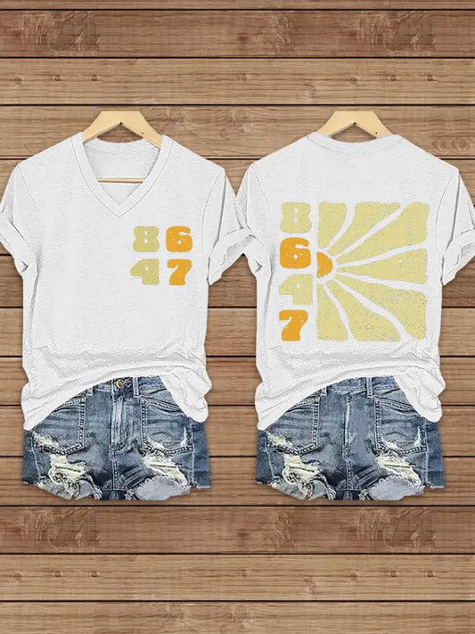 • Women’s 8647 Printed V-Neck T-Shirt Black / S Apparel