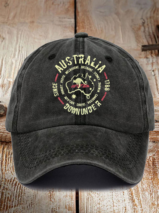 Retro Australian Desert Polka Dot Art Kangaroo Casual Print Washed Hat