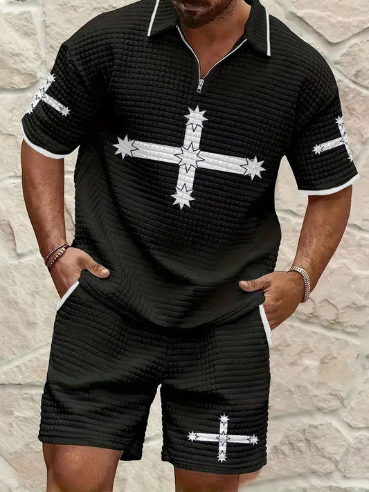 Men's Vintage Australian Flag Coat of Arms Lines Printed Casual Cotton Short Sleeve Polo Shirt