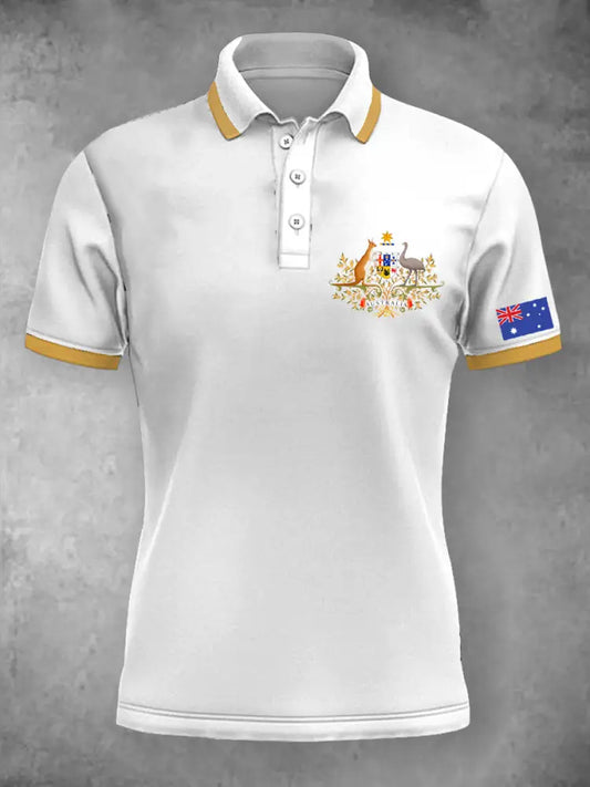 Men's Vintage Australian Flag Coat of Arms Lines Printed Casual Cotton Short Sleeve Polo Shirt