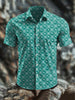 Men's Vintage Christmas Deer Art Abstract Print Casual Cotton Short Sleeve Shirt