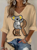 Retro Australian Pointillist Animal Art Print Casual Cotton Waffle Long Sleeve T-Shirt