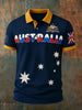 Vintage Australian Flag Badge Patchwork Printed Casual Cotton Short Sleeve Pocket Polo Shirt