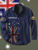 Vintage Australian Flag Badge Print Casual Cotton Pocket Long Sleeve Shirt