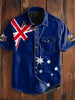 Vintage Australian Flag Badge Print Casual Short Sleeve Pocket Shirt