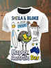Vintage Happy Australia Day Print Casual Cotton Short Sleeve T-Shirt