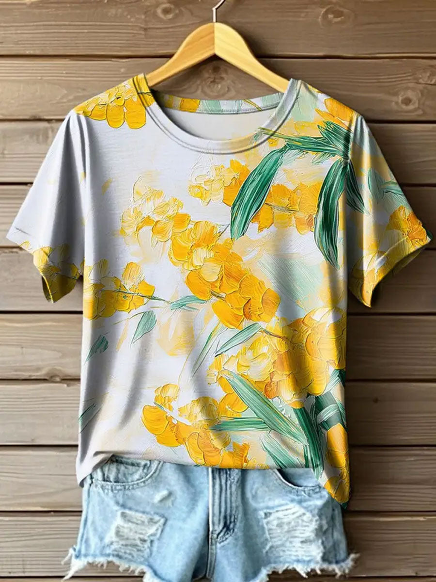 Women's AU Badge Golden Wattle Art Printed T-shirt