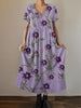 Women's Purple Floral Print Alzheimer's Awareness Support V-Neck Dress
