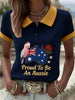 Women's Vintage Aussie Cute Pink Cockatoo Casual Waffle Short Sleeve Polo Shirt